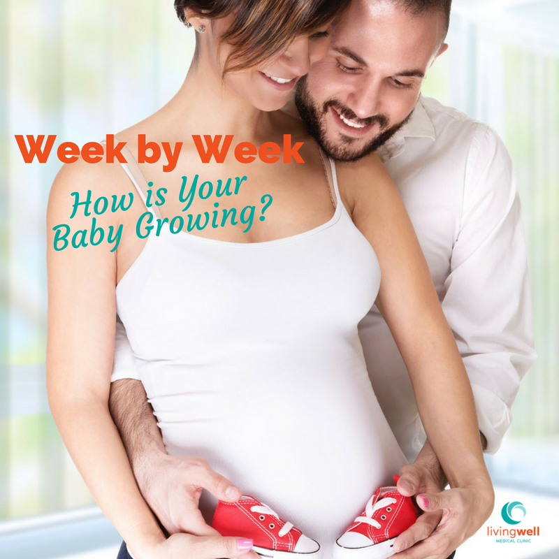 Week 20 is the halfway point! Baby is swallowing, hair is visible and fingerprints and footprints form. By the end of this second trimester, baby knows your voice and may respond to familiar sounds with movement. Lungs are producing a substance called, surfactant, which enables the lungs to inflate and deflate. By now your baby is approximately 9 inches long and may weigh nearly two pounds. As the second trimester ends, all systems are continuing to mature and grow. By week 23 -24, babies who are born at this time, are capable, with intense medical care, to live outside the womb.